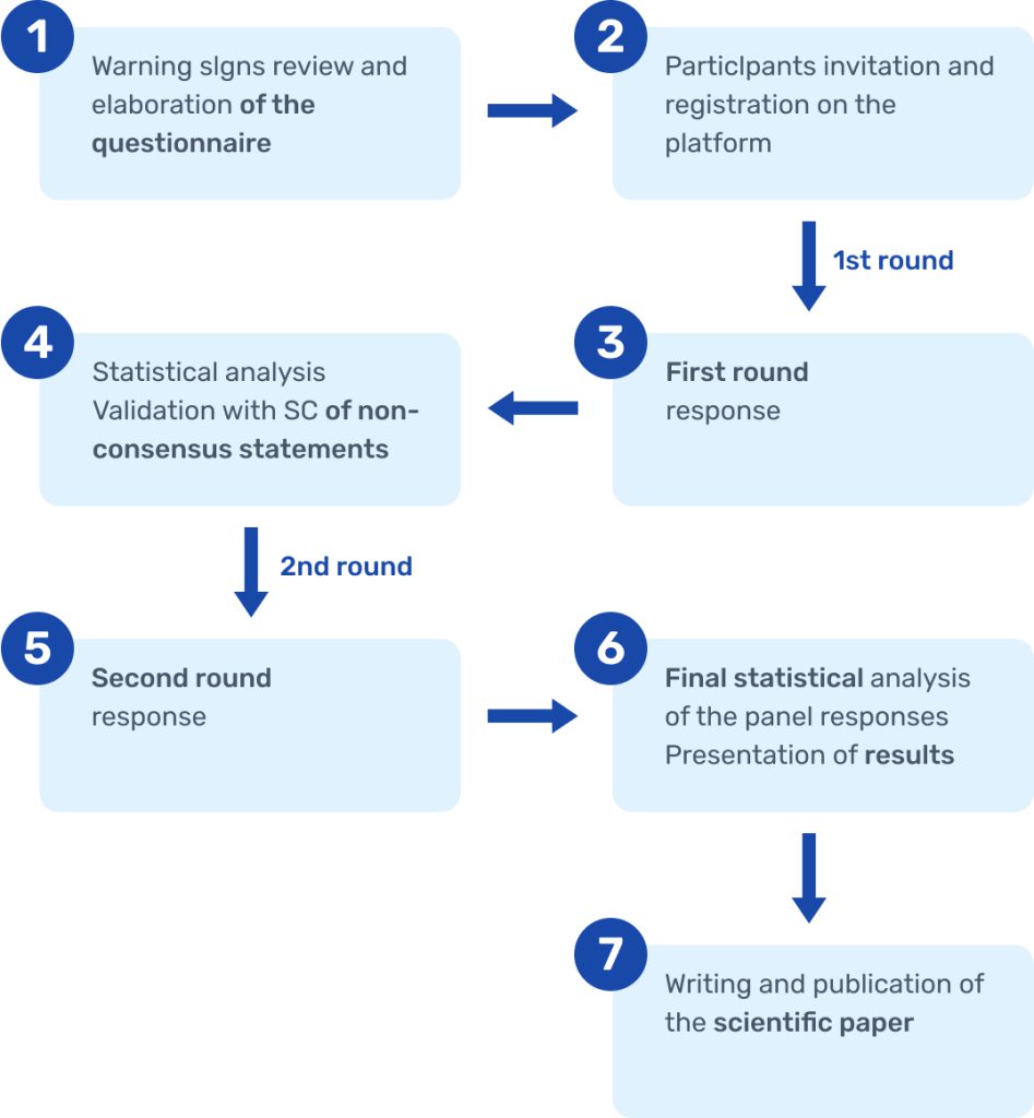 The methodology proposed for the achievement of the set objectives is an adaptation of the Delphi qualitative technique (modified Delphi), widely used to assess in a structured and systematic way the opinion on a specific topic. The main purpose of the Delphi technique is to generate a reliable consensus opinion from a group of experts through an iterative questionnaire process with controlled feedback.